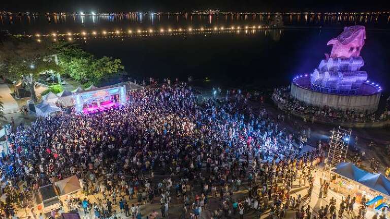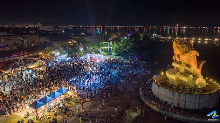 活動現場人潮洶湧,從傍晚開始,舞台燈光漸次點亮,氣氛逐步升溫。無人機在起飛前,團隊已完成詳細的航線規劃與安全評估,確保飛行不會影響觀眾與活動流程。隨著夜幕降臨,舞台上精彩的演出與觀眾的熱情互動,成為拍攝的第一波重點。從高空俯瞰,整個舞台架構在燈光映照下清晰可見,視覺效果壯觀而完整。