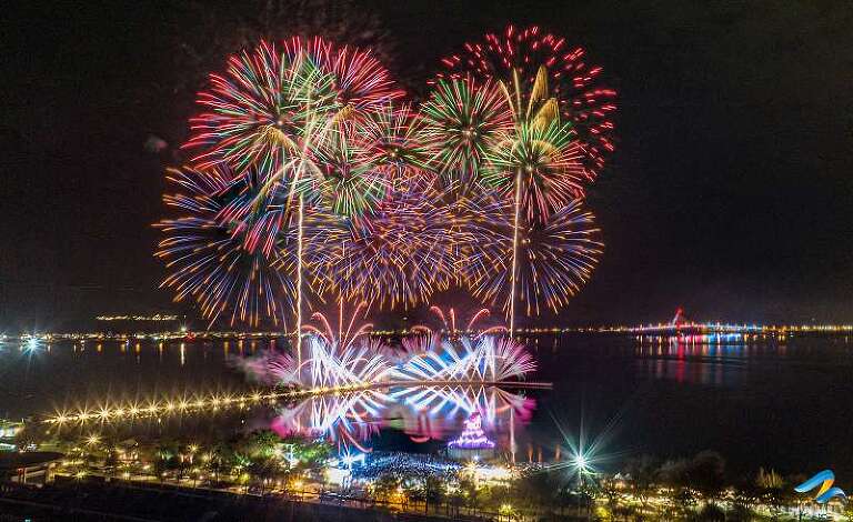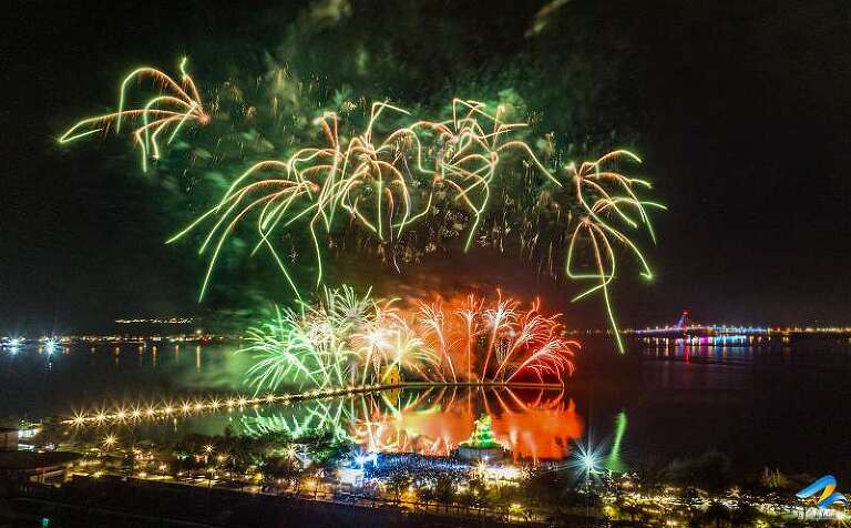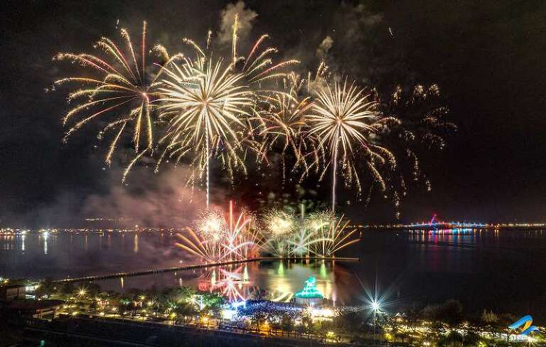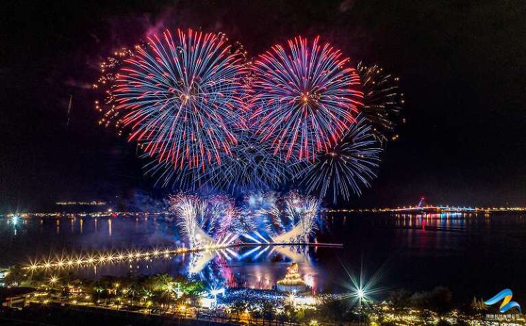 活動最高潮來自於煙火施放。無人機升至高空,以多角度紀錄煙火綻放的瞬間,結合舞台下人群的歡呼,畫面震撼而動人。與地面攝影相比,空拍能同時捕捉煙火在夜空綻放的全景與舞台演出的同步效果,營造出最具臨場感的影像。