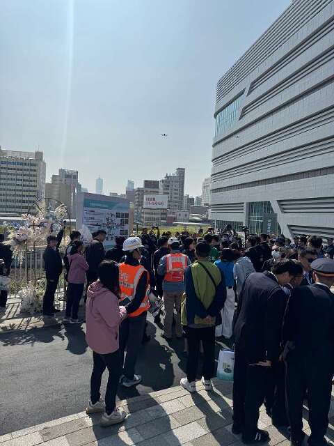 夜間拍攝則捕捉到車站燈光點亮後的氛圍,車輛與人潮交錯的場景,映照出高雄市中心的新風貌。無人機鏡頭不僅記錄了車站的建築之美,也捕捉了民眾參與其中的熱情,展現了城市與人群的緊密連結。
