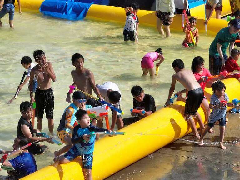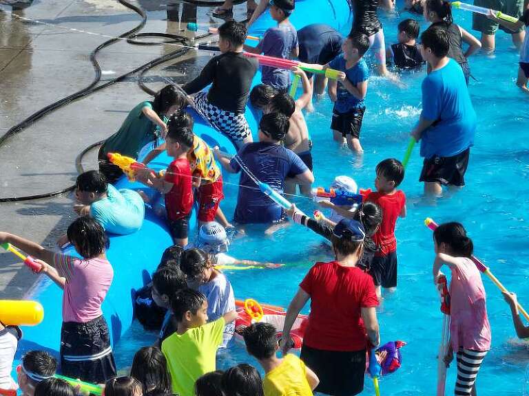 活動亮點:聚焦於親子家庭的畫面,小朋友揮舞水槍的笑容成為影片的最佳素材。